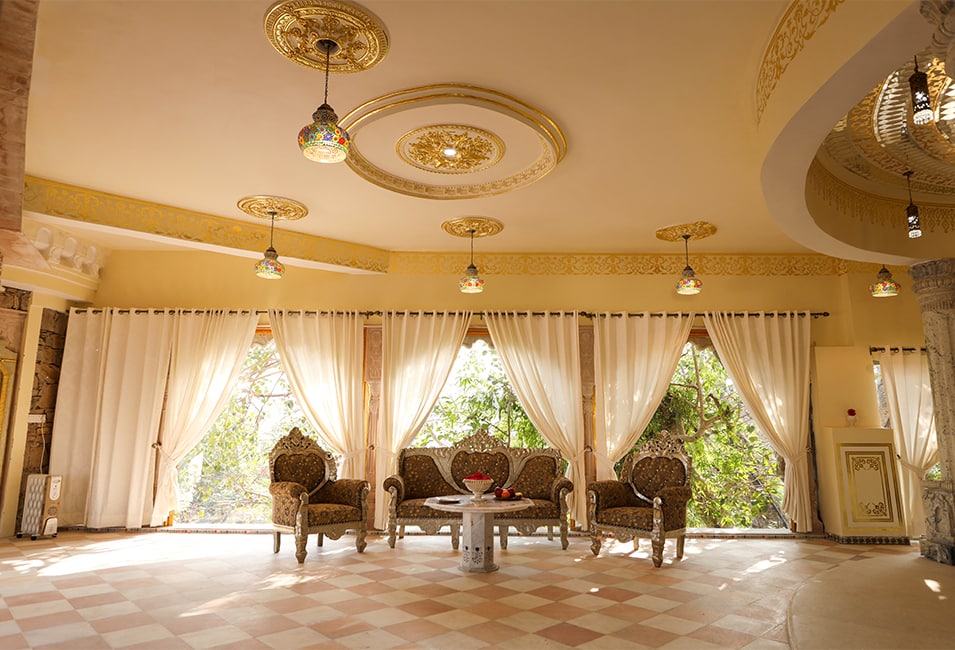 Just look at the “Meenakari” wall art, the drapes, and the architectural pillars make this room feel like an art museum. With a large balcony overlooking the Aravallis and a bed that promises to be the ideal choice for a modern Maharaja, you can expect nothing less than the best.
