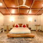 The Cottage room with a Jacuzzi is unique and appears to retain the spirit of the visitors who once stayed here, with a traditional king-sized wooden bed, stone-encrusted walls, and an elegant bathroom with a Jacuzzi.