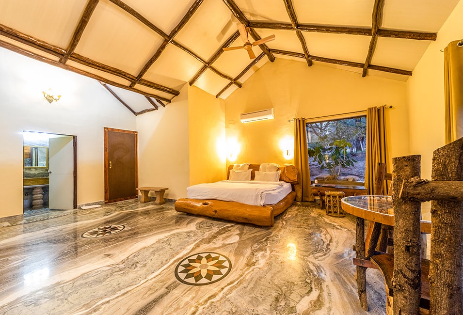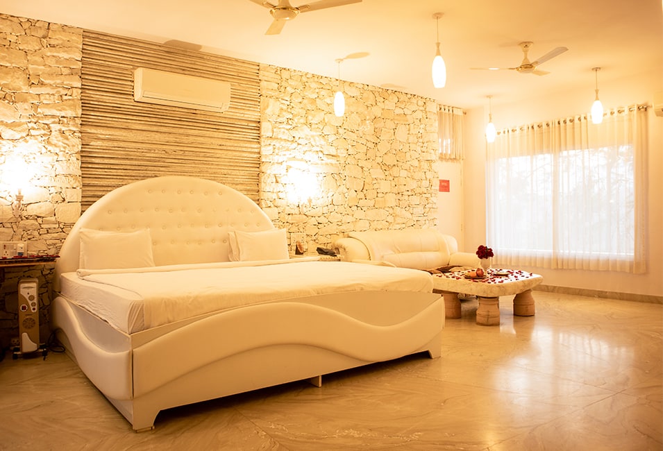 Stone walls tend us to take back in time which brings simplicity to complicated spaces, adds natural goodness to modern interiors, and allows us to add texture and uniqueness. The resort offers a Luxury Suite with all the natural stone walls with fuzzy lighting, old-world grandeur, and a private outdoor pool or jacuzzi to complete your stay with utmost comfort.