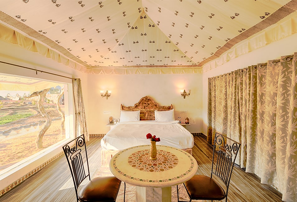 Trying to bridge the gap between the wild and luxury, the resort offers Luxury Tent rooms in different categories, which offers you a terrific therapeutic and glamping experience that enables you to live close to nature while having access to all the luxury comforts, including period furnishings and a private pool or jacuzzi to rejuvenate your senses.